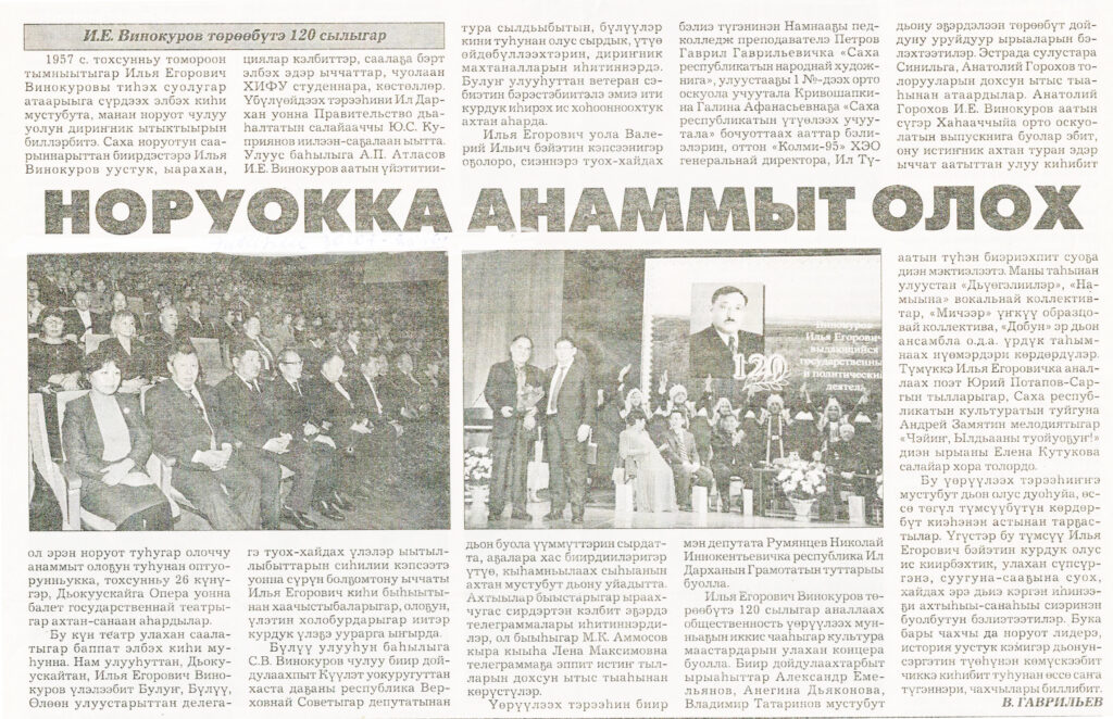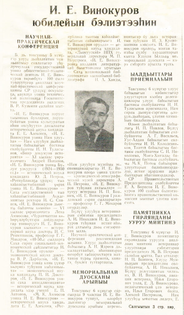 И.Е.Винокуров үбүлүөйдээх сылларыгар