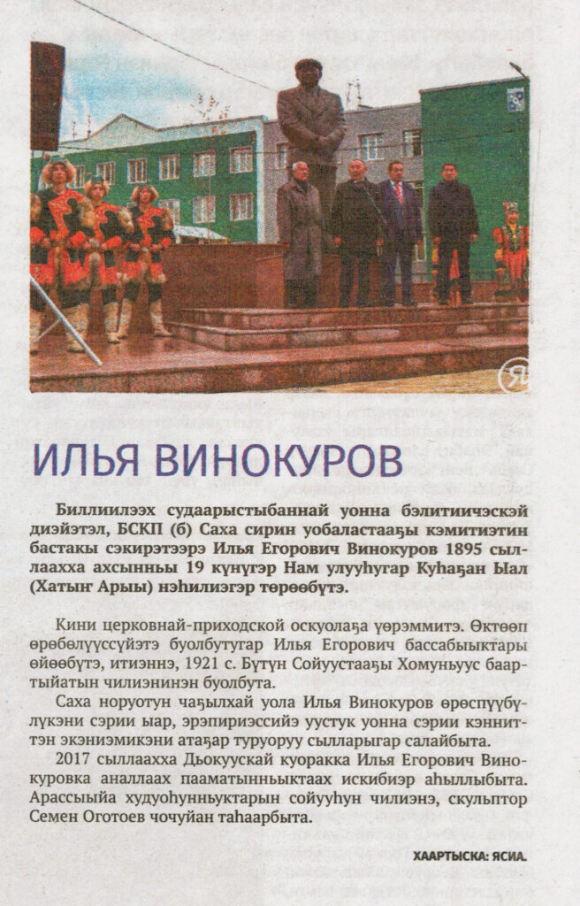 Акимова А., Аммосова А., Васильева А., Львова С., Захарова У. Саха сирин чулуу дьоно: Илья Винокуров / А. Акимова, А. Аммосова, А. Васильева, С. Львова, У. Захарова // Саха сирэ. — 2025. — Балаҕан ыйын 26 к.
