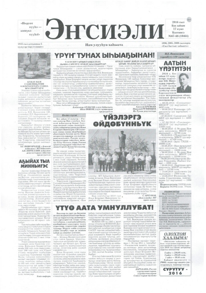 Винокуров, Д. Бигэтик үйэтитии / Д. Винокуров // Энсиэли. — 2002. — Ыам ыйын16 кунэ