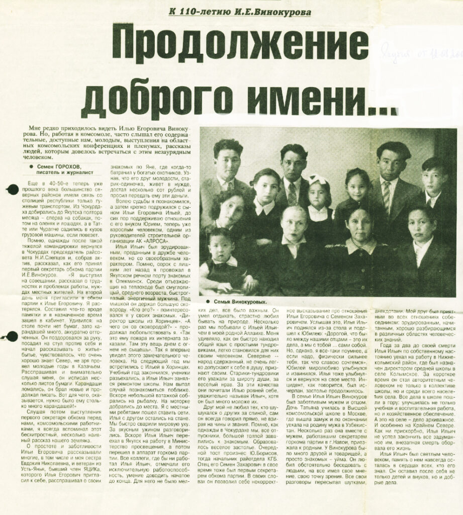 Горохов,С. Продолжение доброго имени / С. Горохов // Якутия. — 2006. — 12 января