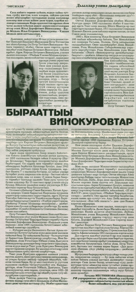 Местникова, Т. Бырааттыы Винокуровтар / Т. Местникова // Энсиэли. — 2019. — Атырдьах ыйын 1к