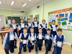 Олимпиаде участвовало из Хатын-Арынской СОШ им.И.Е.Винокурова 65 учеников. Из 4а класса — 7 детей, 4б класса — 13 учеников, 6а класса — 19 учеников, 6б класса — 13 учеников, 7 класса — 13 учеников. Участники Олимпиады выполнили задания, соответствующие их возрастной категории.